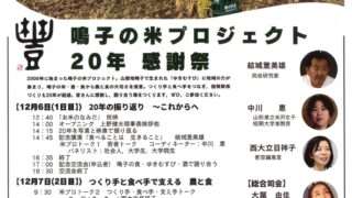 イベント情報 鳴子の米プロジェクト20年感謝祭 2006年に始まった鳴子の米プロジェクト。山間地鳴子で生まれた「ゆきむすび」に地域の力が集まり、鳴子の米・器・食から農と食の大切さを提言。つくり手と食べ手をつなぎ、信頼関係づくりも20年が経過。皆さんに感謝し、語り合う場をつくります。ぜひ、ご参加ください。 2025.11.07 イベント情報イベント情報2025