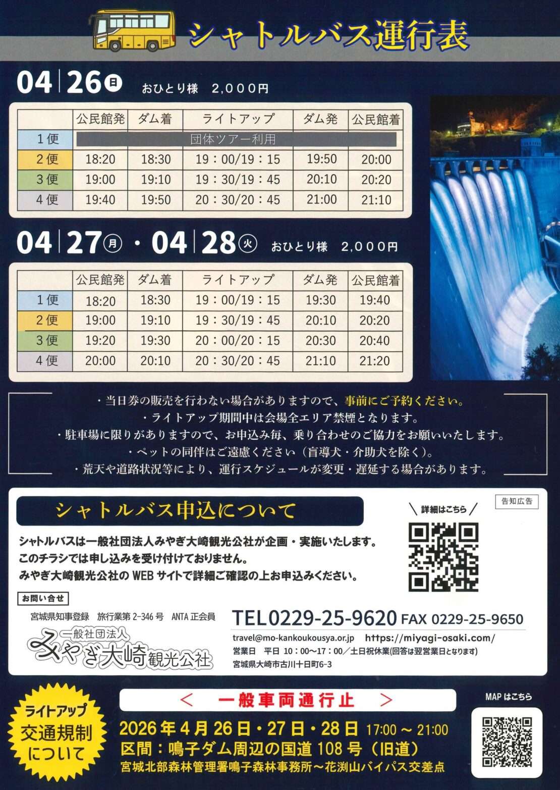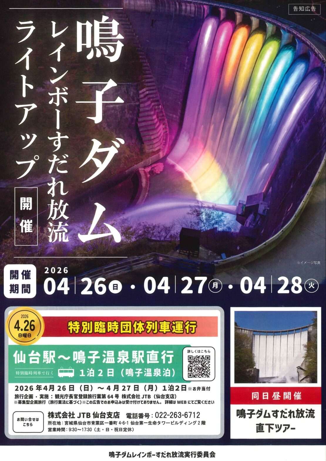 ≪鳴子ダムレインボーすだれ放流シャトルバスツアー≫