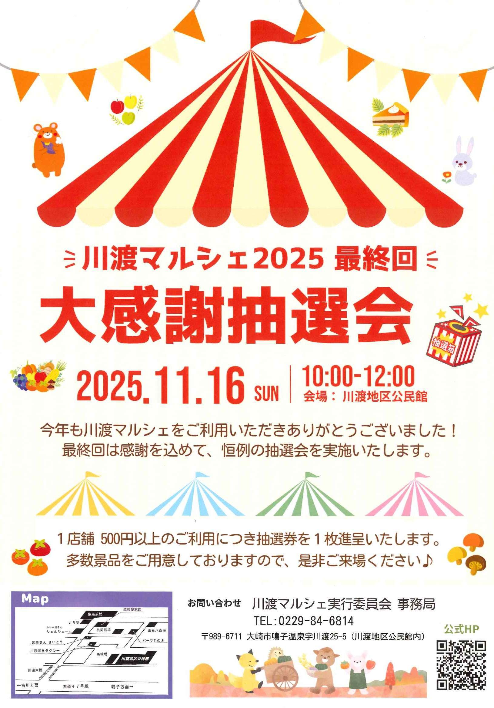 川渡マルシェ2025の最終回は感謝を込めて、恒例の抽選会が開催されます。