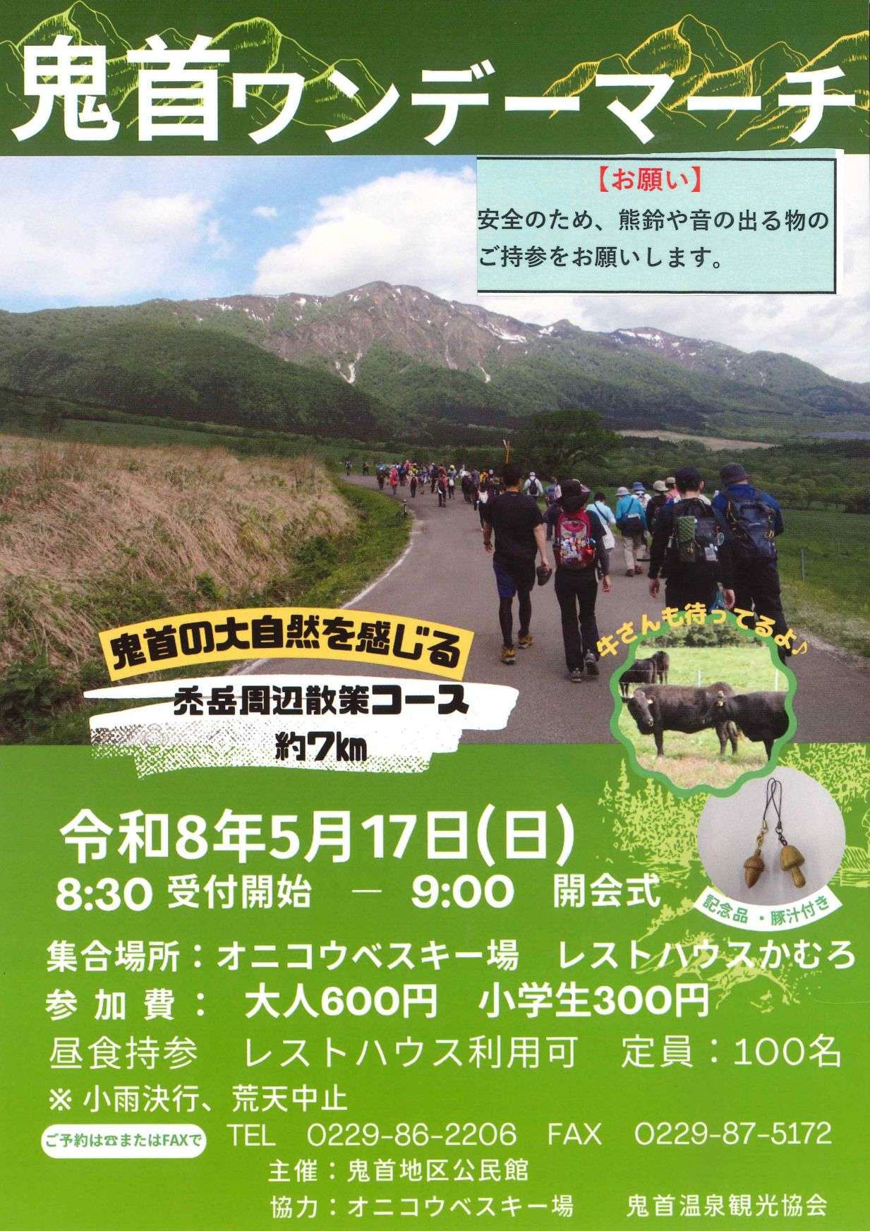 【主催・申込】鬼首地区公民館 TEL:0229-86-2206 FAX:0229-87-5172