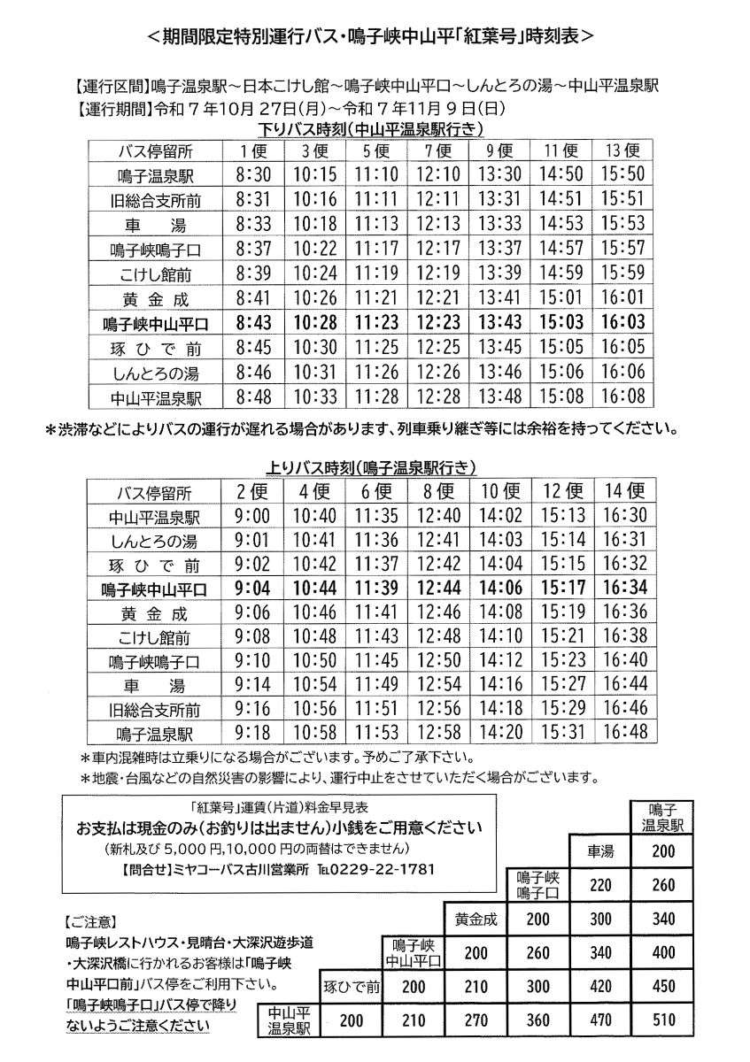 「臨時バス紅葉号(こうようごう)」運行